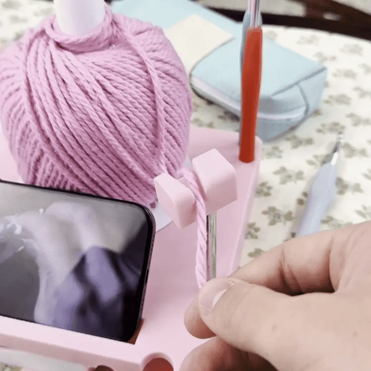 The Crochet Caddy includes a built-in slot to hold your iPhone, perfect for watching crochet tutorials hands-free.